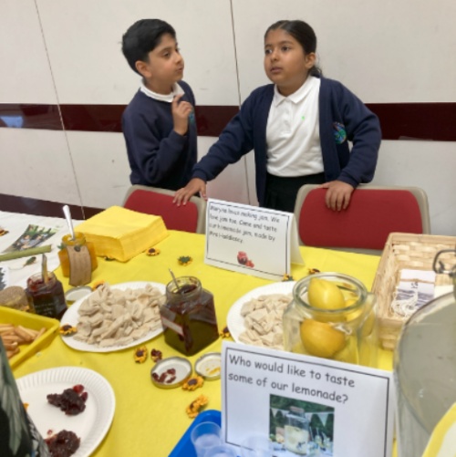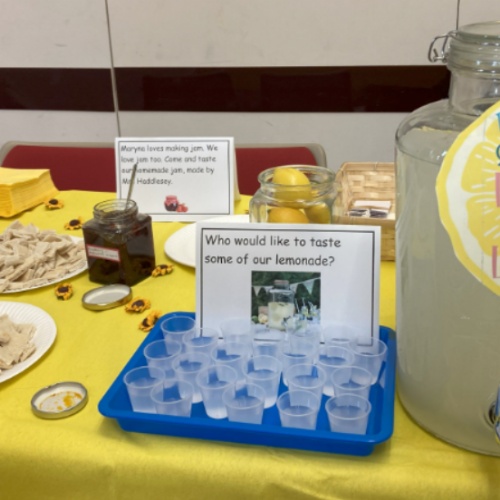 As well as performing, we showcased our work and dedicated it to our link refugee, Maryna. Maryna loved our display so much and loved drinking our tasty lemonade. As a gift to Maryna, we gave her some samples of her favourite food, jam! In Ukraine, jam isn't very common so Maryna was amazed at how many jams are available in the UK. Mrs Haddlesey is an expert jam maker and made her a selection of jam, these included some exciting flavours: blackberry, strawberry , damson and even lemon, orange and courgette!