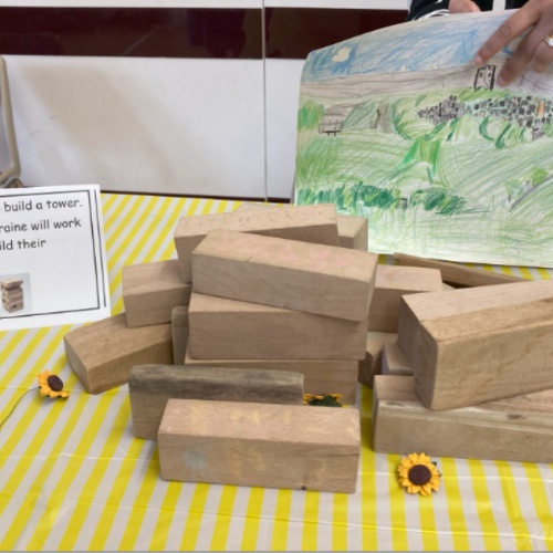 Inside the beautifully wrapped parcel, was an extraordinary, wooden box from a lady named Maryna. Maryna is a refugee from Ukraine and has settled in Dewsbury in search or safety and a happy and peaceful life. The box was collaged in images of Ukraine and her identity which she was so proud of. Inside the box was a sample of a vyshyvanka (traditional Ukrainian blouse), a sunflower badge, the story she would like us to carry and a letter explaining that she would be coming to visit!