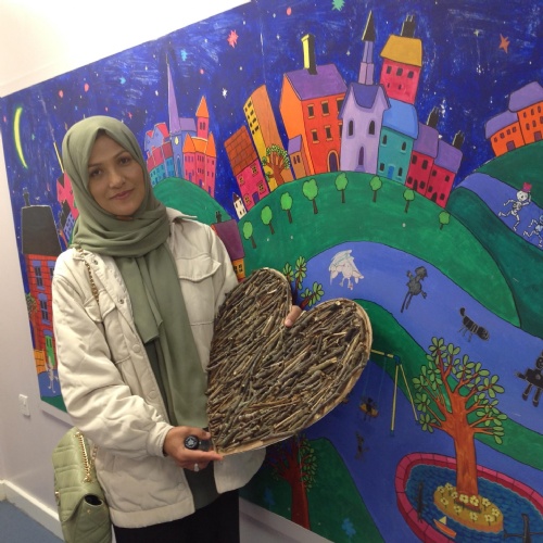 After receiving the story and box from Latifa, she came to visit us in School! We were so excited to finally meet our link refugee. To make her feel welcome, we put signs up outside and around school in Dari, we made her a heart shape gift using sticks, and put on a spread of lovely food to share with her.