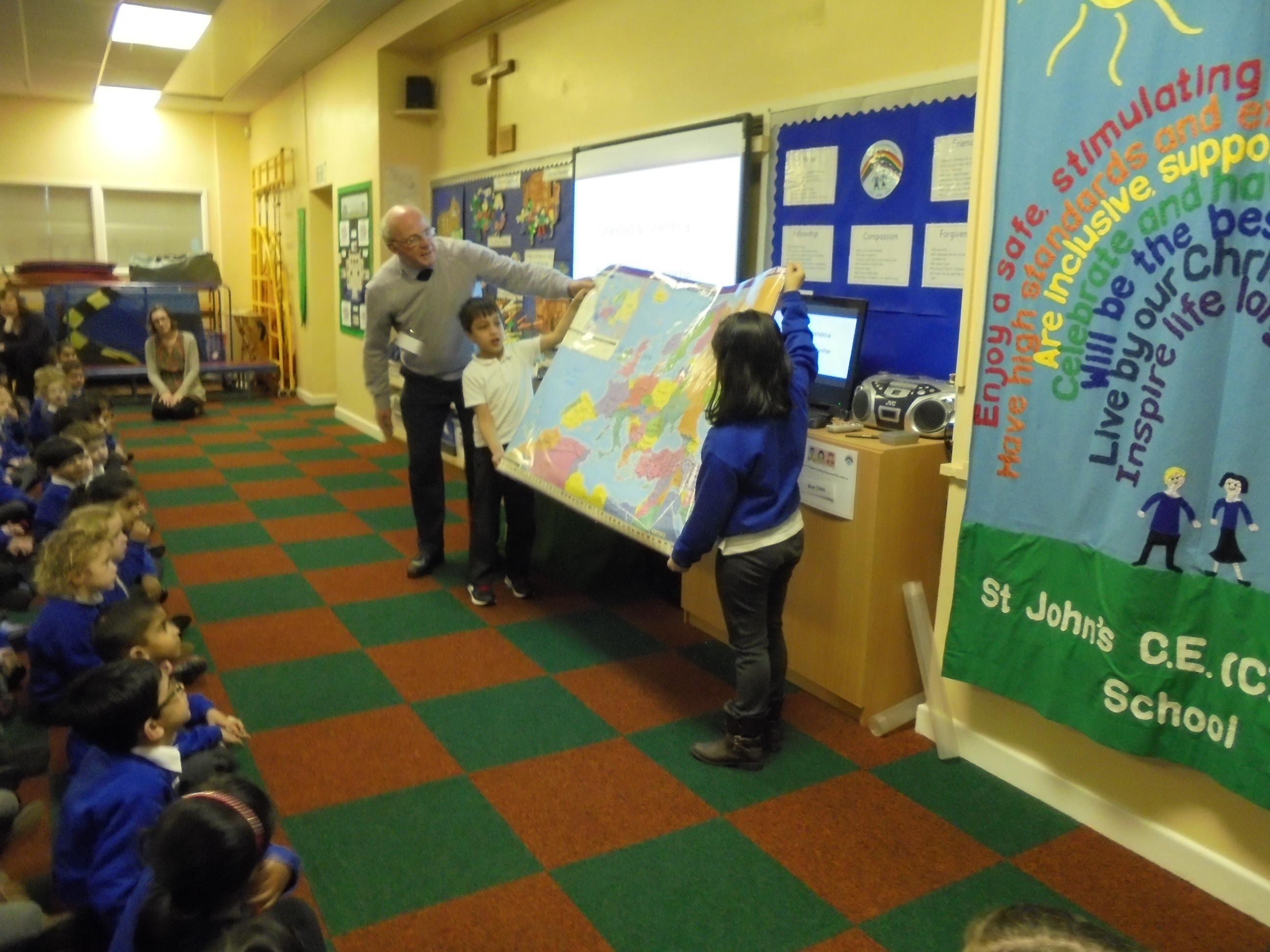 Mr Malcolm Brooke also volunteers in our school and talked about the plight in Act of Worship.
