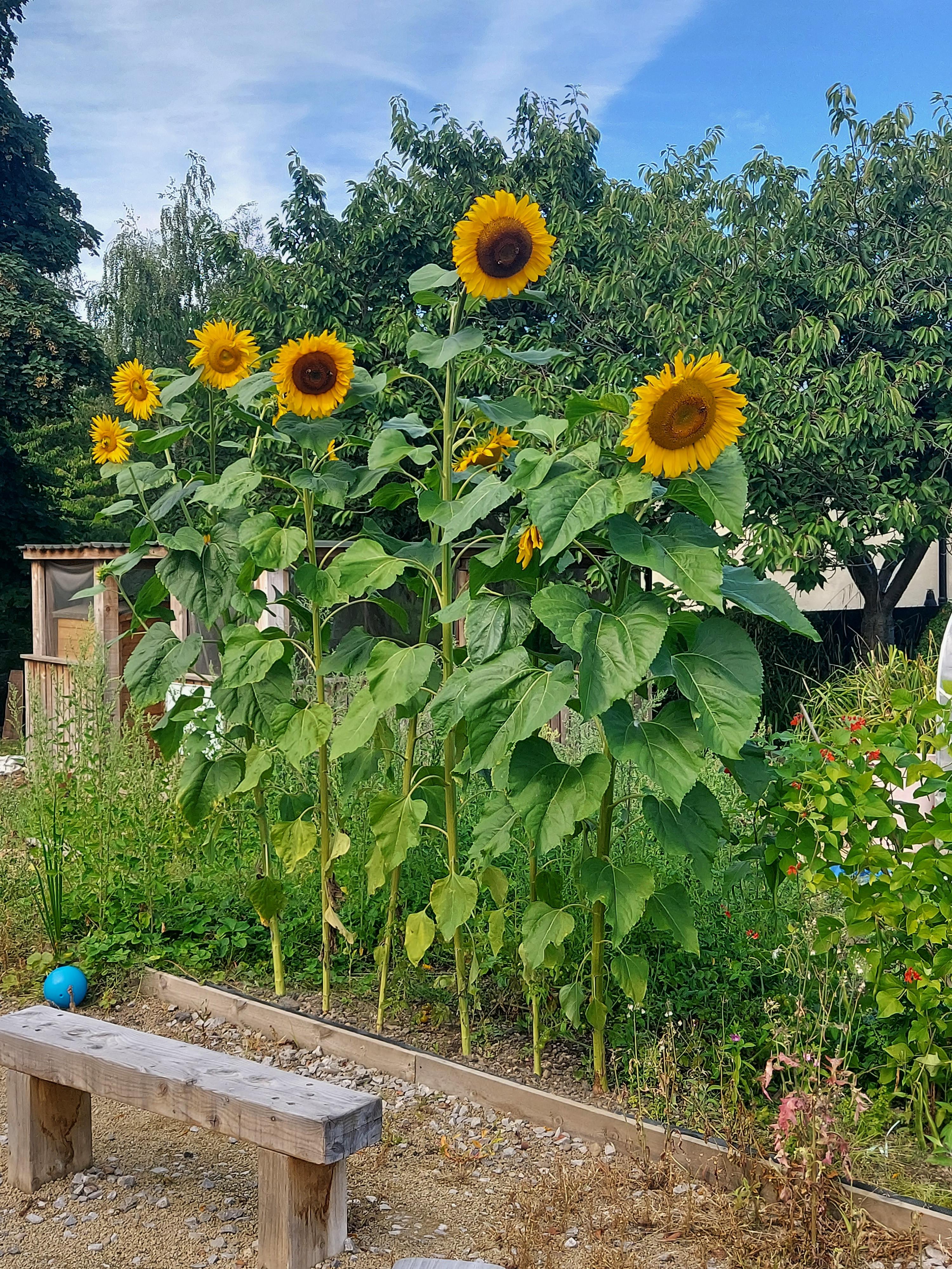 We really enjoy working with and alongside Mr Macphail in our Garden of Eden.  During Summer term 2022, we learnt lots about things we can grow that are healthy for us, like our organic Apple, Beetroot and Runner Beans, but also things that will always cheer us up with it beauty and colour like our amazing flowers.  Our Sunflowers stood tall and proud in our garden whilst we were all away enjoying our summer holidays - keeping an watchful eye on our school.
